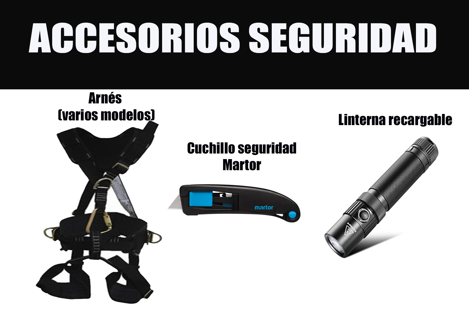 ARNÉS SEGURIDAD CUCHILLOS ESPECIALES LINTERNAS RECARGABLES...